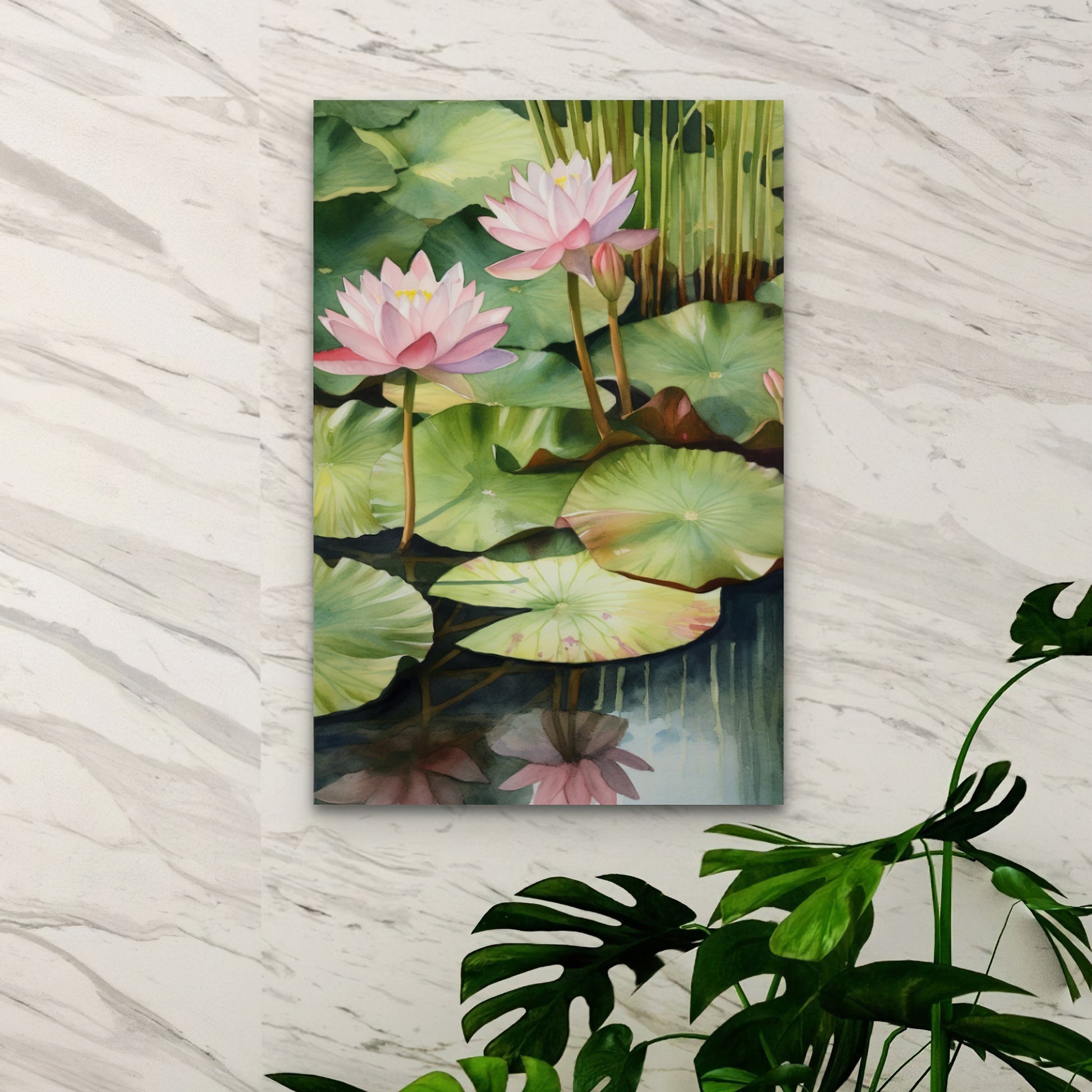 Immerse yourself in the serene and tranquil beauty of this captivating print, featuring delicate pink waterlilies floating on a peaceful pond. The gentle and soft brushstrokes evoke a sense of grace and elegance, adding to the overall sense of harmony and balance. Pink waterlilies symbolize love, romance, and purity, making this artwork a perfect addition to a romantic and intimate space. Whether you're an art enthusiast or simply looking for a beautiful piece to enhance your home or office, this painting of pink waterlilies on the pond is sure to inspire and enchant. Let the soothing and calming essence of this artwork transform your space into a peaceful oasis.
